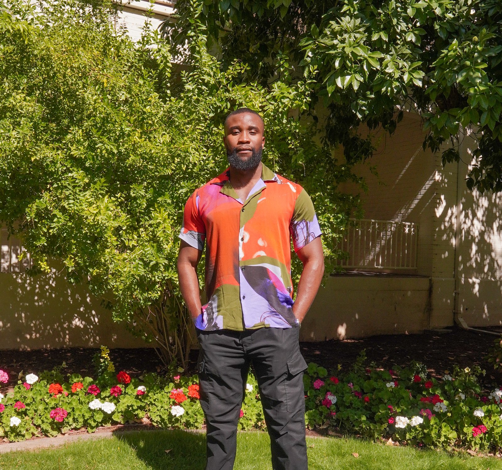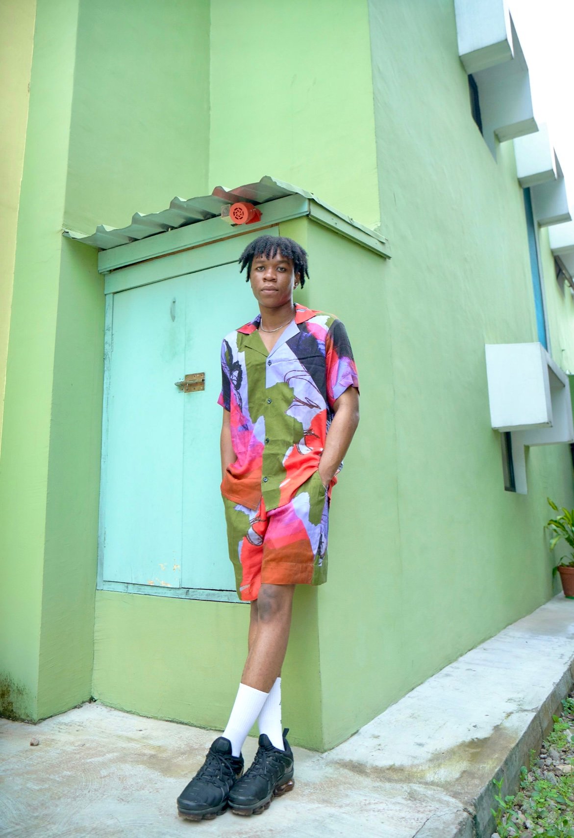 Men two-piece rayon set in Burning print